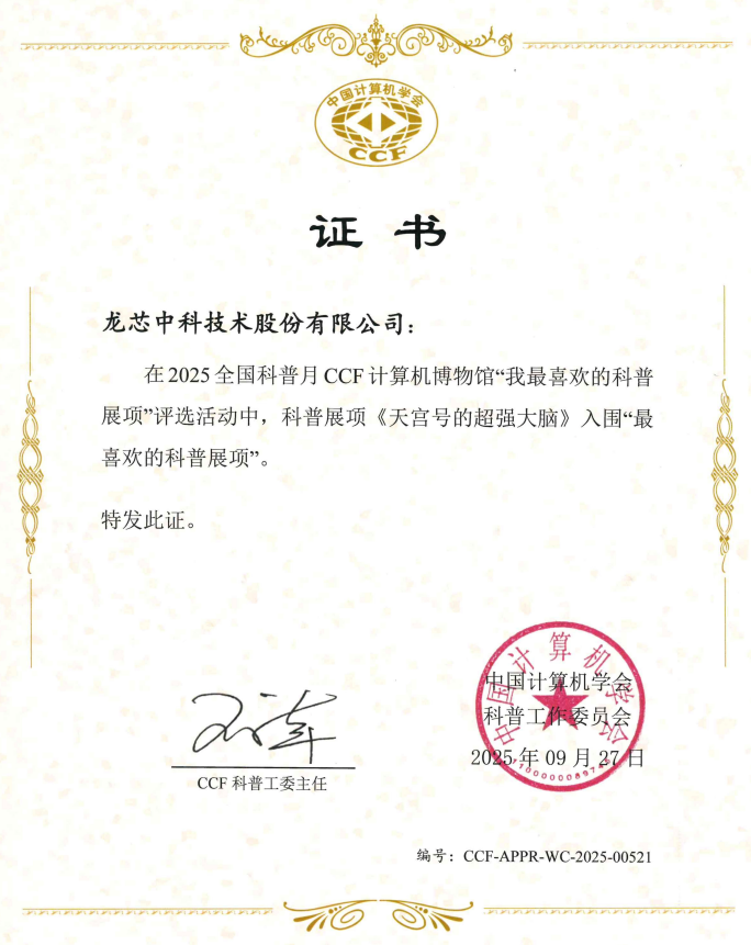 龍芯中科積極踐行企業(yè)社會責任,持續(xù)開辦、支持科普活動。2025年全國科普月期間,由龍芯團隊設計的《天宮號的超強大腦》科普展項成功入圍CCF全國科普月重點活動“CCF計算機博物館我最喜歡的科普展項”評選,將航天工程中芯片的特殊設計及工作原理轉化為可觸可感的科普體驗。